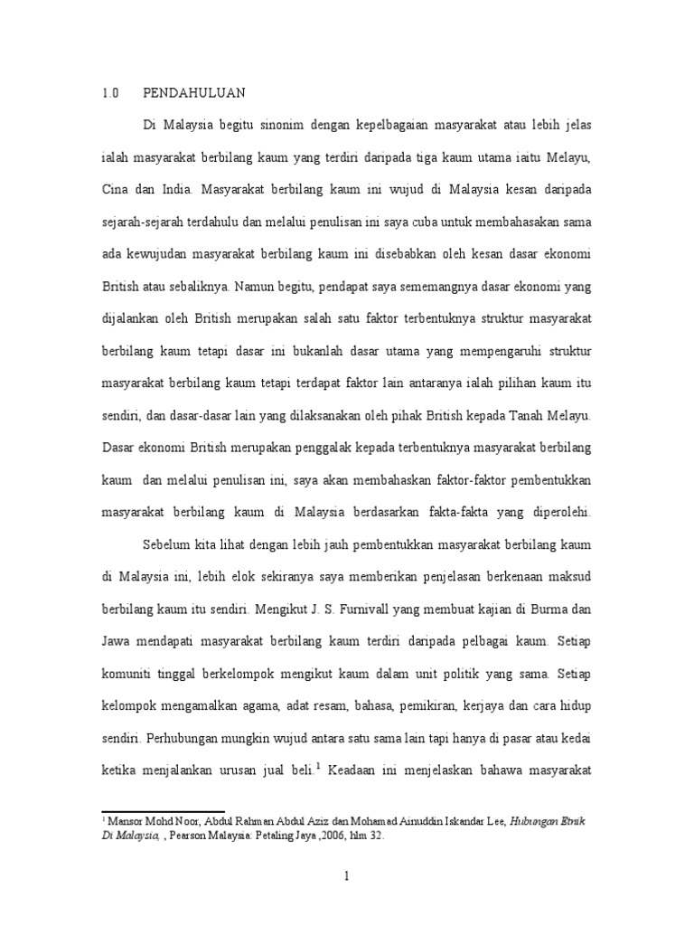 Pembentukan Masyarakat Berbilang Kaum : Mempunyai agama, kebudayaan, adat dan kepercayaan tersendiri.. Masyarakat terdiri daripada pelbagai kaum, budaya dan agama memang menjadi cabaran kepada kebanyakan negara khususnya dalam mengurus kemajmukan sosial itu. Sendiri tanpa desakan oleh selamat.25 keadaan ini telah mengwujudkan masyarakat berbilang kaum di malaysia. Masyarakat malaysia merupakan masyarakat yang berbilang kaum yang majoritinya terdiri daripada kaum melayu, cina dan in. Merapatkan jurang perbezaan antara setiap kaum. Bahasa pertuturan juga berbeza antara satu sama lain.