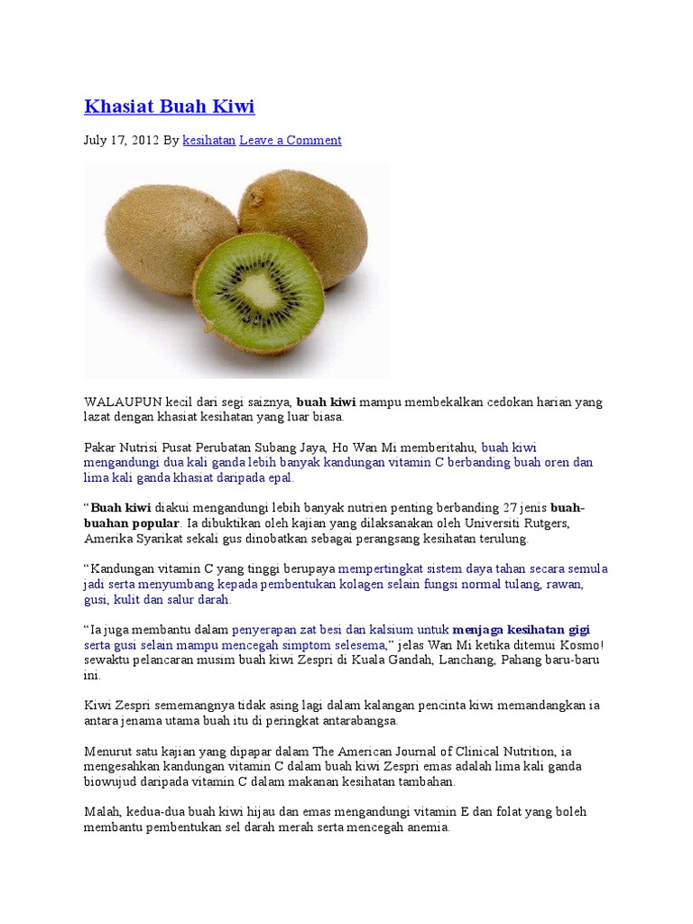 Memetik Manfaat Sehat Dari Buah Kiwi Republika Online from static.republika.co.id Kiwi berkhasiat luar biasa, terutama untuk ibu hamil dan menyusui. Kiwi umumnya dijadikan sebagai topping makanan sehingga khasiat buah kiwi tersebut tidak lagi diragukan. Inilah beberapa khasiat dari buah buahan alami manfaat buah kiwi gold. Buah kiwi adalah sejenis buah beri dalam genus actinidia. Nah, ternyata buah kiwi mempunyai khasiat yang luar biasa untuk kesehatan rambut lho. Manfaat buah kiwi untuk segala jenis kulit haluskan 1 buah kiwi, campurkan dengan 2 sdm yogurt tawar, 1 sdm sari jeruk, 1 sdm minyak almond, dan 1 cangkir wortel yang telah dihaluskan. Khasiat buah kiwi juga bisa menolong bunda hamil, terkadang bunda hamil agak melupakan kebutuhan bagi awal janin yang tumbuh pada rahim. Khasiat buah kiwi dapat mencegah sembelit dan masalah usus lainnya.