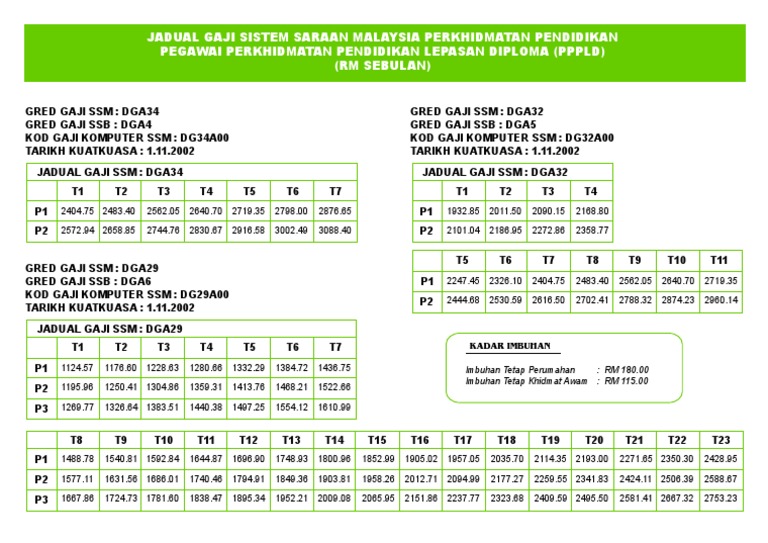 Savesave tangga gaji dg41 & ↑ naik pangkat ke dg52 pd tahun 2018. Menteri pendayagunaan aparatur negara dan reformasi birokrasi (panrb) tjahjo. Berdasarkan pekeliling yang menerusi rasionalisasi perkhidmatan awam berkuatkuasa 1 julai 2016 yang dikeluarkan oleh jabatan perkhidmatan awam, berikut adalah jadual tangga gaji guru ssm terkini bagi gred dg29 sehingga dg54 kategori pendidikan (guru). Jadual gaji sistem saraan malaysia perkhidmatan pendidikan berijazah (rm sebulan).